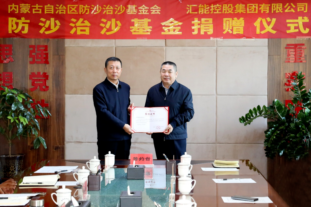 匯能控股集團(tuán)向內(nèi)蒙古自治區(qū)防沙治沙基金會(huì)捐贈(zèng)儀式在呼和浩特市舉行
