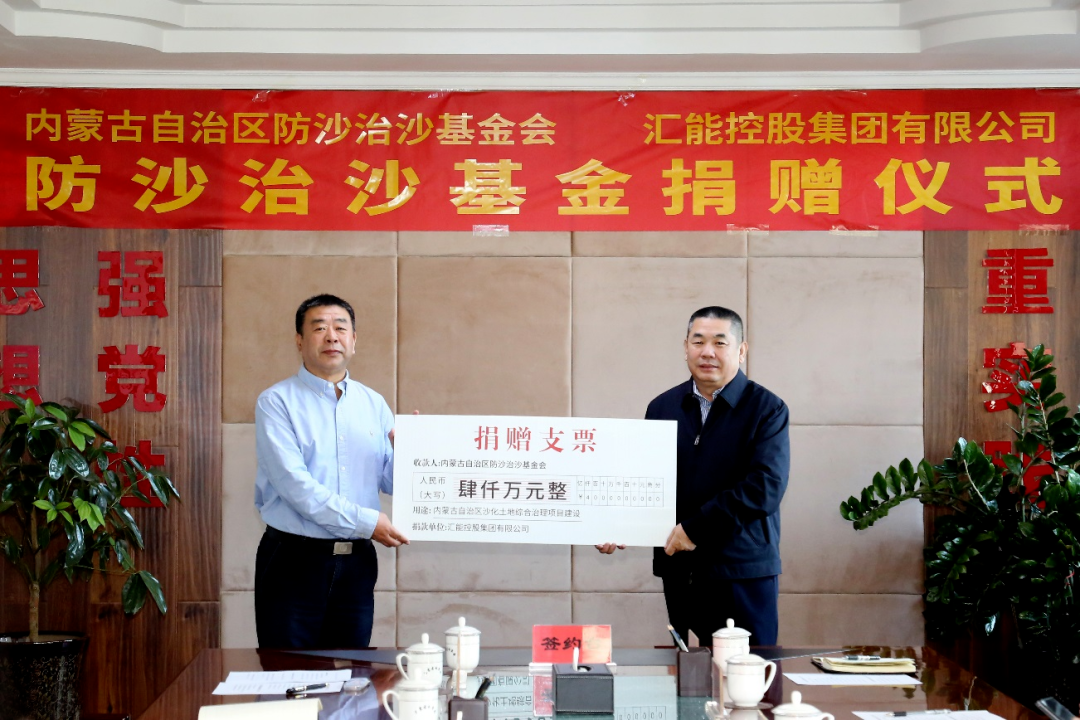 匯能控股集團(tuán)向內(nèi)蒙古自治區(qū)防沙治沙基金會(huì)捐贈(zèng)資金4000萬(wàn)元
